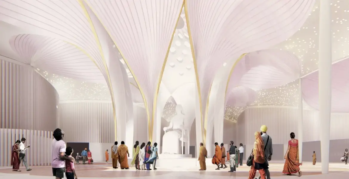 By the way, the architecture firm gave a hint about the purpose of the building: “The lotus will host immersive exhibitions, while namaste will home valuable relics and provide space to study Jagadguru’s teachings.”